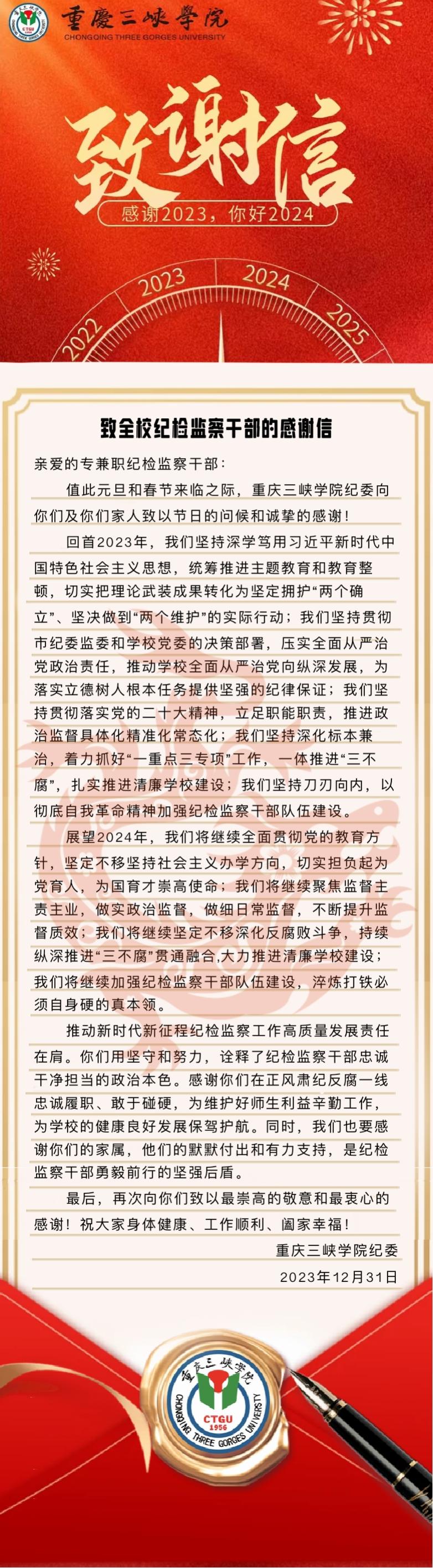 mansion88主页纪委致全校纪检监察干部的感谢信
