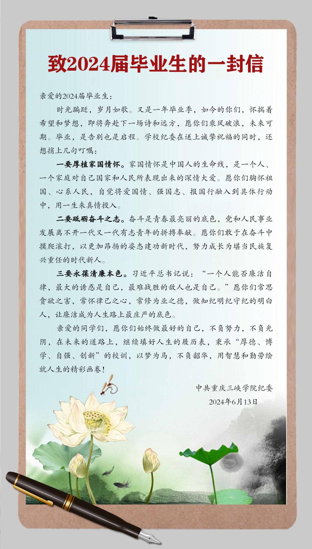 mansion88主页纪委致2024届毕业生的一封信